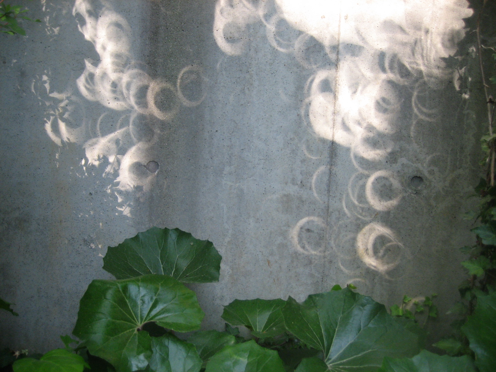 (写真はコンクリート塀に映った木漏れ日。金環日食によってリングに。クリックすれば拡大)