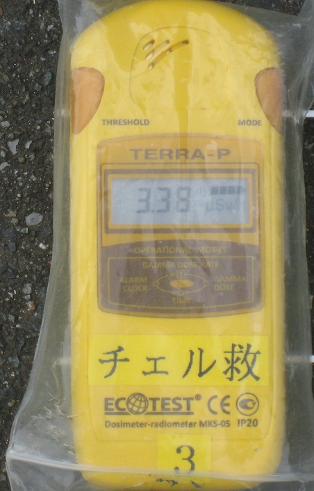測定機はウクライナ製のGM(ガイガーミューラー計数)式です。精度が高いと聞いています。価格は9万円ですが、現地ではもっと安く手に入るようです。