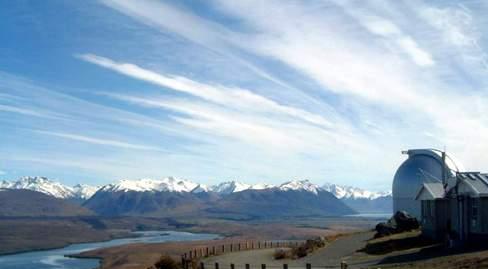 このような星空を見るためには、気象条件と立地条件が揃っている必要があります。一つは冬期で空気が乾燥していることです。雲ひとつない快晴に恵まれたのですから幸運でしたが、よく考えたらこれは普段フツウによくあることです。(左はニュージーランド昼のテカポの天文台。拡大は写真をクリック)
