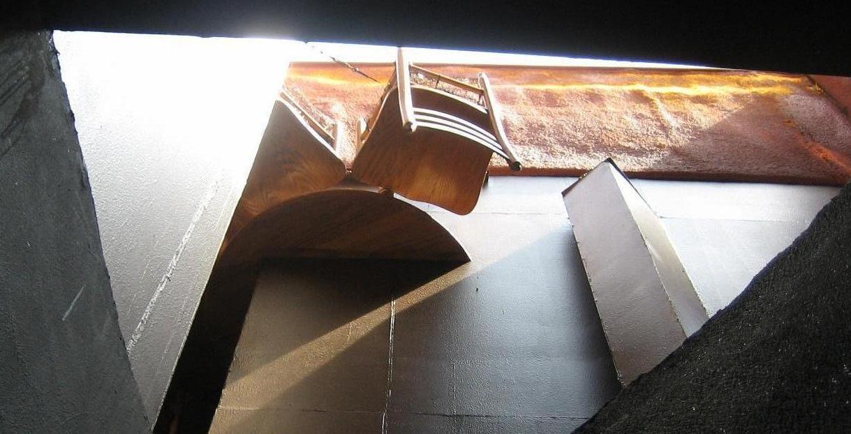 また、頭上に机や椅子が逆さに取り付けられていますから、自分のほうが天から地上を覗いていることになる‥。