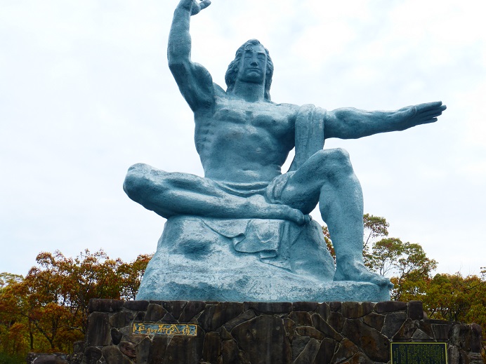 さて、長崎の平和公園も同様に戦災復興計画の一つで、爆心地とその周辺地に資料館と平和祈念像というよく知られた像(写真)があります。