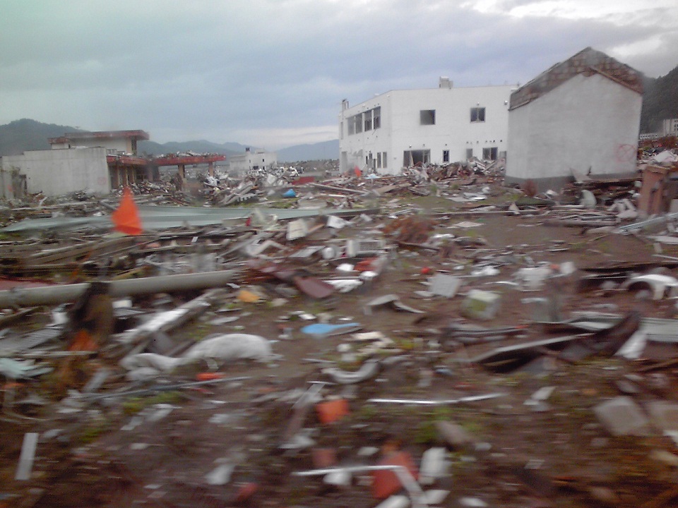 さて、写真にもあるように、被災地はまだまだガレキが散乱しているみたいです。ニオイも強烈で、ウジもすごいらしい。