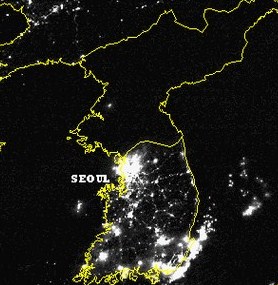 上の写真からは、韓国も全土がくっきりと浮かび上がっていることがわかります。でも、韓国は夜になると「島」になるんです。北朝鮮が真っ暗闇だからです。